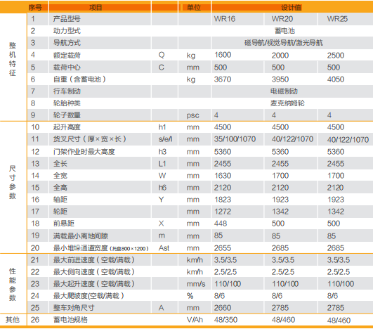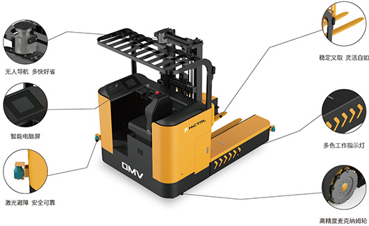 麥克納姆輪全方位任意移動(dòng);雙液壓缸前移機(jī)構(gòu)門架前移更加穩(wěn)定可靠;搖擺式轉(zhuǎn)向橋,克服地面坑洼不平帶來(lái)的影響;搭載激光導(dǎo)航、磁導(dǎo)航、視覺導(dǎo)航等系統(tǒng), 實(shí)現(xiàn)智能無(wú)人化;手動(dòng)遙控實(shí)現(xiàn)定位精度達(dá)到±0.5mm; 個(gè)性化定制起升重量以及堆垛高度;可選裝叉車常用屬具,工作范圍更廣;根據(jù)客戶要求,可選配鉛酸蓄電池或鋰電池;
