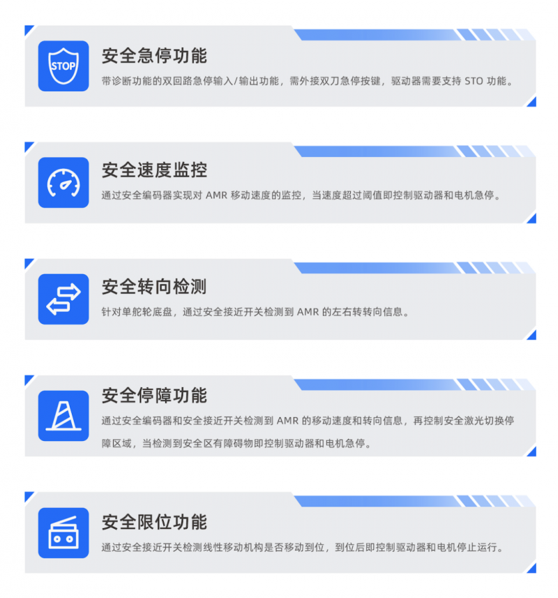這就意味著通過 SRC-3000FS,無需安全“PLC”,即可搭建滿足 ISO 3691-4 國際安全標(biāo)準(zhǔn)的 AMR!由 SRC- 3000FS 打造的 AMR 性能強悍的同時空間更加緊湊,這不僅降低造 AMR 的難度,還能為客戶提供更多樣的造車選擇,為國產(chǎn) AMR 提供強有力的技術(shù)支持,促進(jìn) AMR 行業(yè)繁榮發(fā)展!
