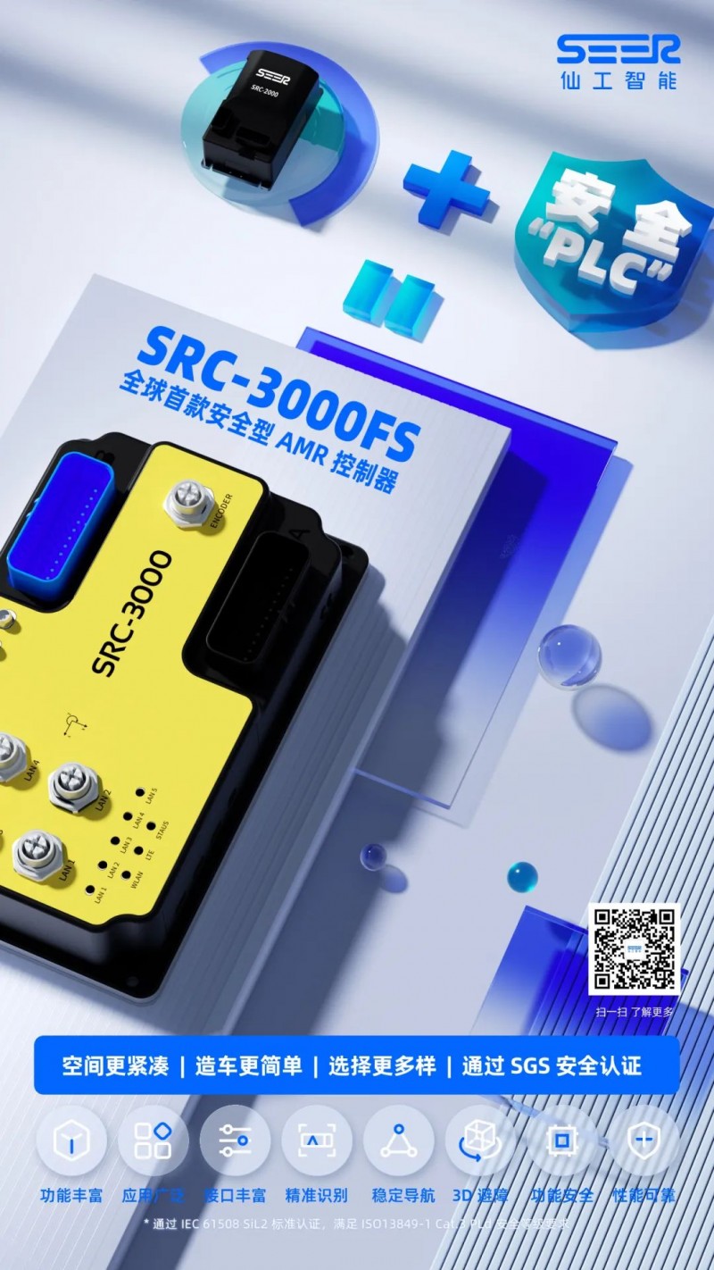 仙工智能 SRC-3000FS 由仙工智能自主研發(fā)的安全型 AMR 控制器,通過了 SGS TUV SAAR 功能安全認(rèn)證。SRC-3000FS 集激光SLAM導(dǎo)航、功能安全于一體的,是目前唯一一個通過該認(rèn)證的控制器產(chǎn)品。