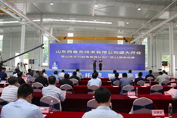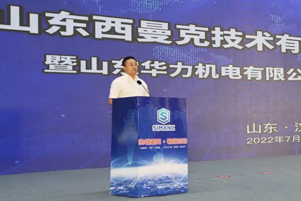 山東華力機電有限公司董事長郭永旭先生發表致辭,對出席慶典的各位嘉賓表示熱烈的歡迎。郭董提到,山東西曼克技術有限公司在高書記、李縣長等縣直各部的大力支持下終于在今天建成開業投產,該項目第一期新建高標準廠房70000平方米,即將開建的第二期工程再建高標準“員工之家”樣式的廠房106000平方米,預計明年的今天建成投產。郭董對華力機電公司從2011年至今的發展與成就進行了總結,他指出,華力機電從銷售收入只有1億元,通過十年的拼搏到20年實現銷售收6. 8億元,產品也在不斷地更新換代,新技術新產品不斷涌現,并且得到了良好的市場應用。郭董表示,隨著西曼克公司的新廠落成開業,有決心有信心更有底氣,把機器人產業做強做大,用優異的成績,來回報各位領導、各位客戶、各位供應商和各位朋友的大力支持。