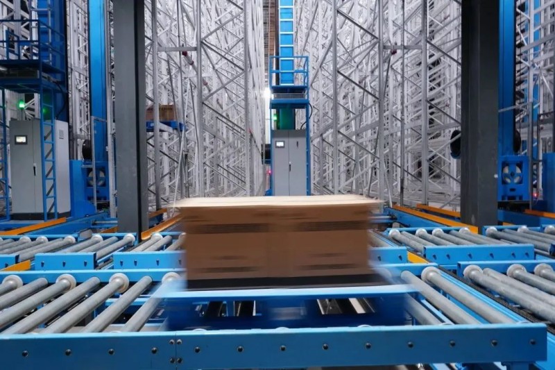 該立庫共有5臺單深堆垛機,10,080個托盤貨位,整體出入庫流量最高可達175托/小時。