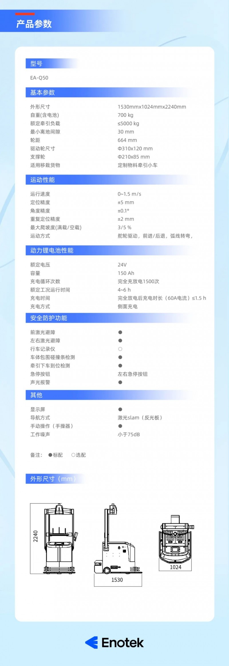 安歌科技一直致力于努力研發(fā),突破壁壘,不斷完善產(chǎn)品系列,開拓更多行業(yè)應(yīng)用,服務(wù)中國智能制造與智能物流。經(jīng)過潛心研發(fā),安歌科技牽引式AGV EA-Q50 重磅上市啦!