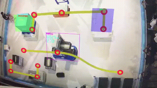 RoboView 可以實現(xiàn)對場景內(nèi)的所有狀態(tài)實時安全監(jiān)控,包括:外來異物(非作業(yè)人員、作業(yè)人員進入非安全區(qū)域、AMR 脫離預(yù)設(shè)任務(wù)軌跡、非作業(yè) AMR 等)侵入監(jiān)控、貨物狀態(tài)監(jiān)控、AMR 路線障礙物檢測、其他聯(lián)動設(shè)備的監(jiān)控(如大型貨架,升降電梯等)。