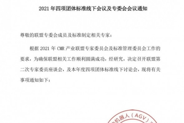 關于召開工業應用移動機器人 2021年四項團體標準線下會議及專委會會議通知