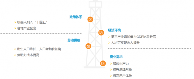 “政策 +經(jīng)濟(jì) +勞動 +商業(yè)”加持, 驅(qū)動著商用服務(wù)賽道高速發(fā)展。