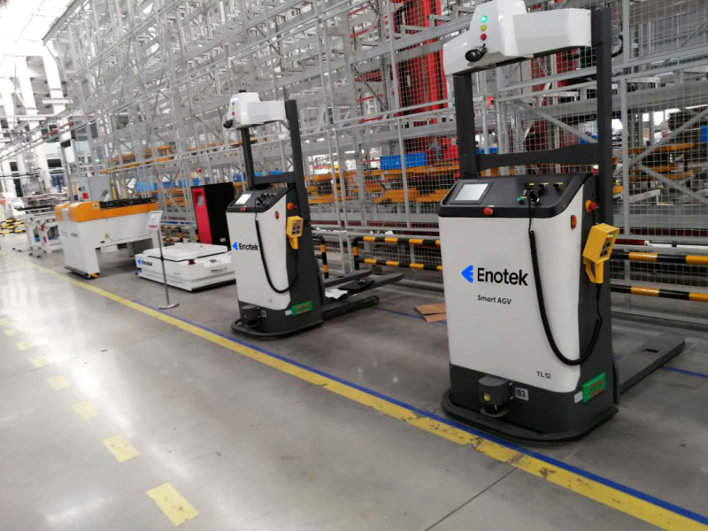 項目中除應用了安歌科技自主研發(fā)的堆垛機外,同時將AGV大量的運用到了工廠內(nèi)的生產(chǎn)流程中,擔任著物流搬運的重要角色。