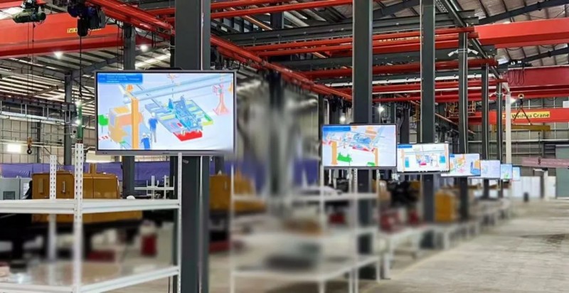 印尼工廠(chǎng)通過(guò)融入國(guó)自的超重載20噸AGV、30噸RGV車(chē)型及其他非標(biāo)設(shè)備,形成由全局智能調(diào)度系統(tǒng)及線(xiàn)體控制系統(tǒng)組成的柔性制造主線(xiàn)。