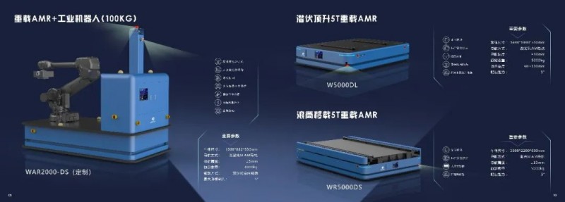 近期,為適應更多的應用場景,井智機器人自主研發的重載AMR (Heavy-duty AMR)全面上線。井智機器人的重載AMR利用OMS、WMS、TMS、FMS,能夠協助客戶實現數字化、智能化的產業升級。如圖示的WR5000DS,負載最高可達到5000KG,產品定位精確,行駛路徑靈活多變,滾筒移載柔性化程度高,可快速全局部署,適合多種現場環境。