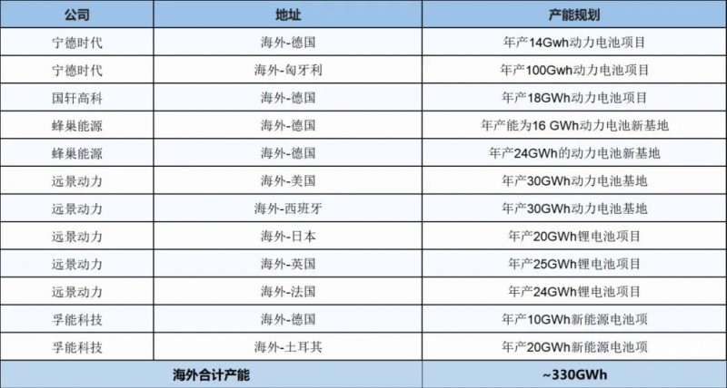 全國動力與儲能電池基地產能統計表5---海外地區