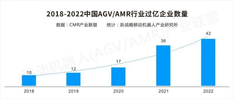 2022年度,中國市場AGV/AMR企業(yè)銷售額過億元的企業(yè)約42家,與2021年度的36家相比,新增了6家企業(yè)。