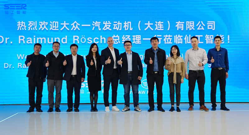 大眾一汽發(fā)動(dòng)機(jī)總經(jīng)理 Dr. Raimund Rösch、總經(jīng)理助理韓露露、生產(chǎn)技術(shù)總監(jiān)宋百秋、生產(chǎn)機(jī)加經(jīng)理王向國(guó)、生產(chǎn)技術(shù)經(jīng)理曹殿廷等一行人蒞臨仙工智能總部參觀交流并參與簽約儀式。