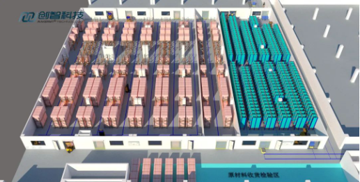 2023年2月23日,創智收到某新能源頭部企業重慶工廠PACK&電芯成品庫的項目訂單。本項目分兩段,分別是電芯周轉和原材料周轉。項目通過AGV、提升機與公司自主開發的WMS系統相結合,實現了原材料、成品流轉全過程的信息采集與管理。