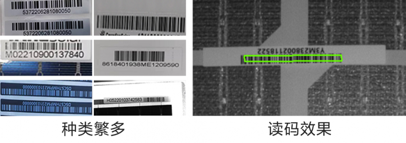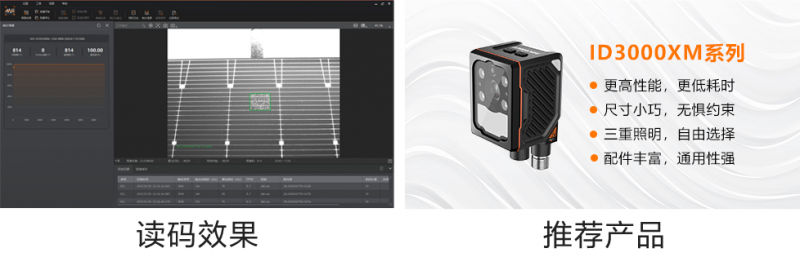 需求:電池片串焊排版后,匯流條處會貼附標簽碼用于質(zhì)量追溯,需要透過一層毛玻璃,及一層EVA膠膜讀取,讀碼后實現(xiàn)至MES系統(tǒng)對接。