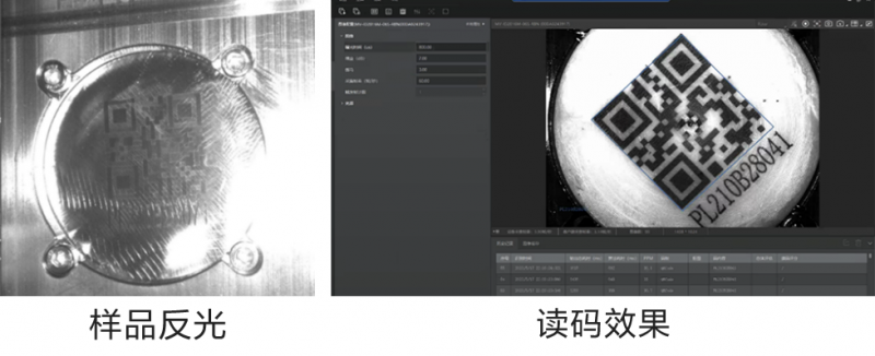 需求:電池片的質(zhì)量追溯,讀取電池片上絲印的二維碼,由于絲印痕跡較淺肉眼基本不可見,讀碼后上傳MES系統(tǒng)實現(xiàn)每個電池片的追溯管理。
