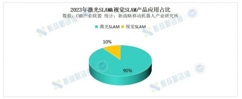 根據(jù)CMR產(chǎn)業(yè)聯(lián)盟數(shù)據(jù),新戰(zhàn)略移動(dòng)機(jī)器人產(chǎn)業(yè)研究所統(tǒng)計(jì),2023年,落地的AMR中,激光SLAM產(chǎn)品占比約為90%,視覺SLAM產(chǎn)品占比為10%。激光SLAM仍舊是應(yīng)用主流。