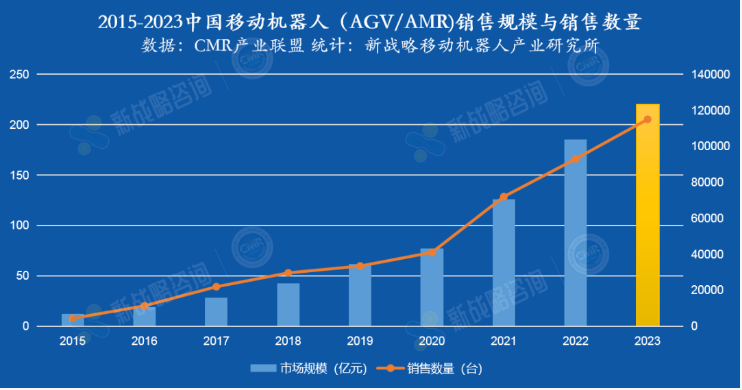 近年來,移動機器人行業的出海趨勢進一步增強。根據新戰略移動機器人產業研究所初步統計,2023年,中國AGV/AMR出口規模預計在45億左右,增長率達25%。