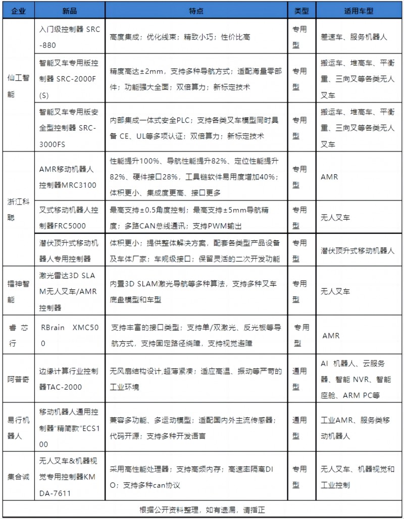 圖表:2023年移動機器人專用控制器新品