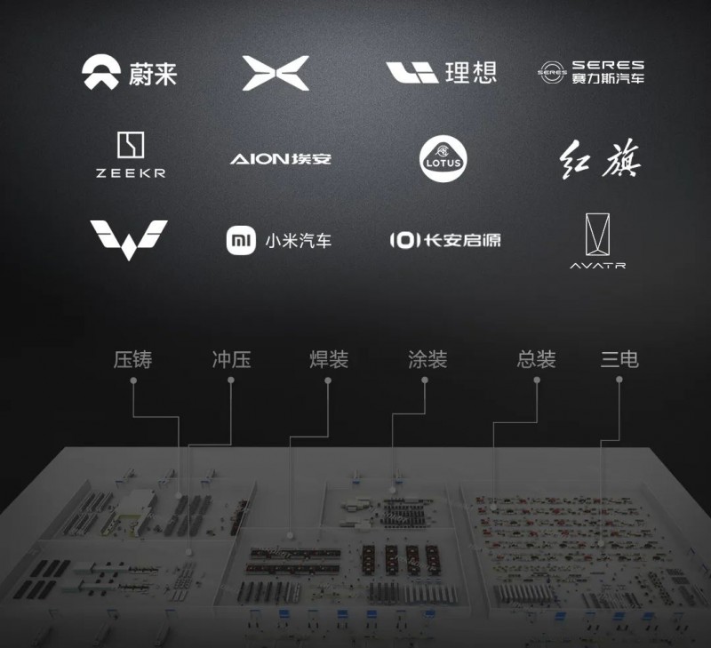 目前,海康機器人已助力蔚來、小鵬、理想、賽力斯、極氪、埃安、路特斯、紅旗、五菱、小米、啟源、阿維塔等大家耳熟能詳?shù)男履茉雌嚻放疲跊_、焊、涂、總、三電等車間推行智能制造。