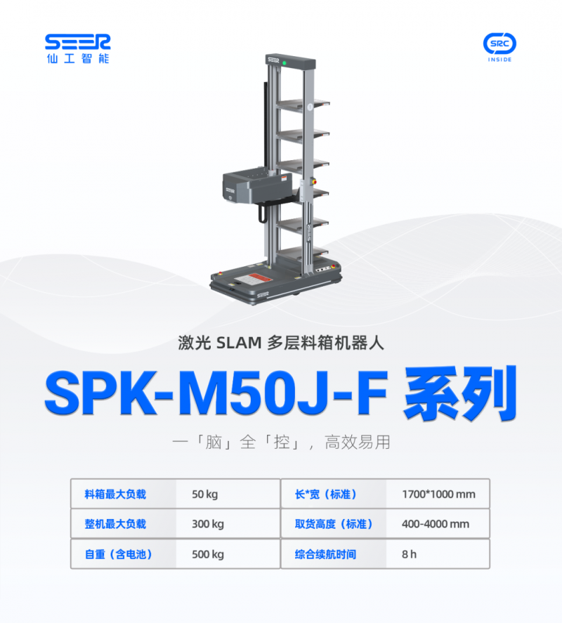基于 SRC 控制器,SPK-M50J-F 系列實現(xiàn)行走、取放貨等動作一體化控制,使得現(xiàn)場交付部署流程更簡單,實際運行易用性更強,故障異常排查更高效,為客戶進一步降本增效。