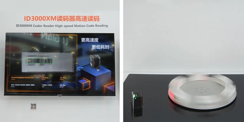 該系列產品選用優質的全局快門CMOS傳感器和高性能硬件平臺,出圖幀率可達60FPS,結合深度學習算法,識讀效率高。現場展示的是對轉速10m/s以上物品進行讀碼作業,讀碼穩定,可輕松應對快消品包裝、煙草、物流等高速運動讀碼場景。