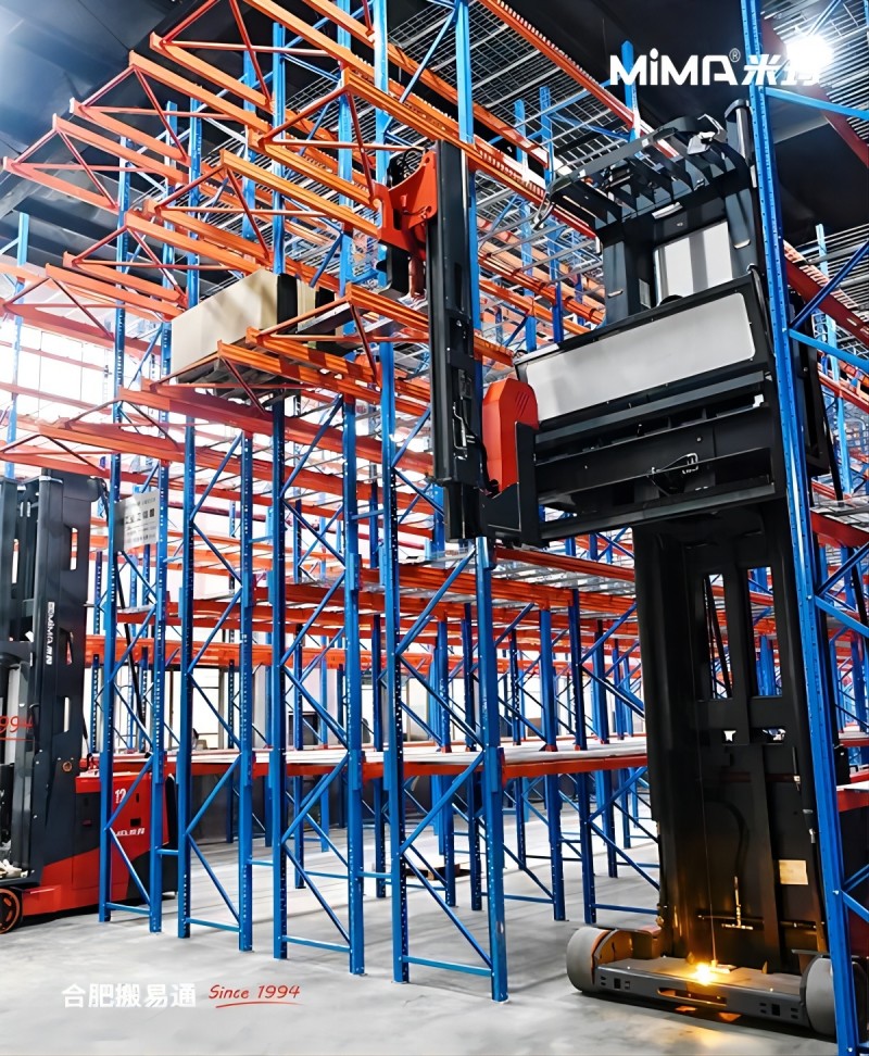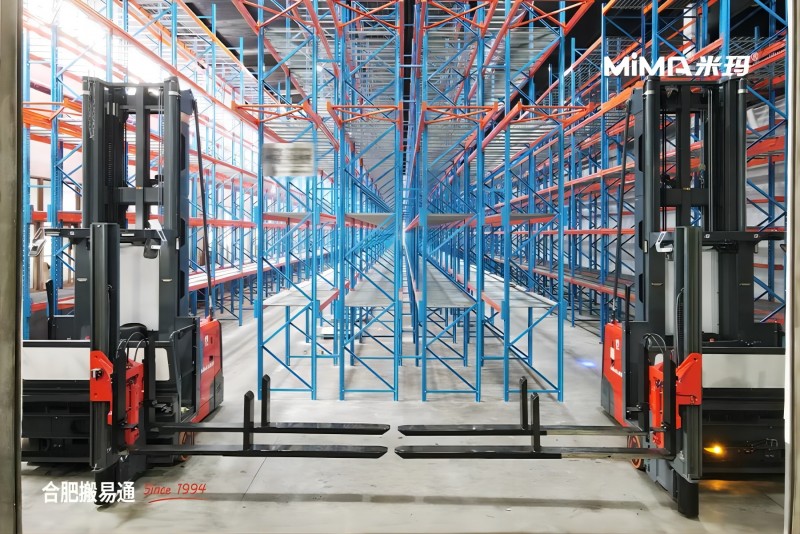 這款MiMA雙深位人上型三向叉車MCC12,其產品設計和功能均達到了國際先進水平。獨特的雙深位伸縮貨叉設計,與MiMA人上型三向叉車的車體完美融合,使叉車能夠自如地在超窄巷道(VNA)中作業(yè),輕松完成雙深位貨架后排貨物的精準存放與堆垛,極大地提高了倉庫存儲密度和貨物周轉率。