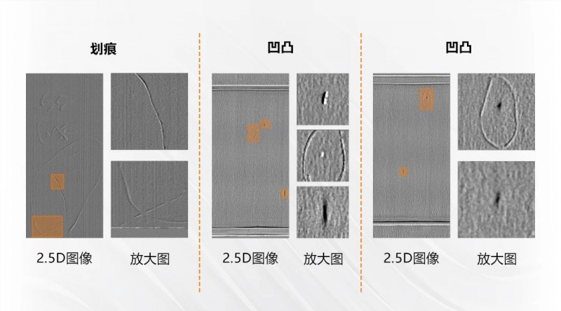 檢測效果:去除表面反光和臟污影響,將有深度變化的缺陷突出;根據臟污與樣品表面的反射特性不同突出臟污缺陷,同時與凹凸等缺陷進行區分