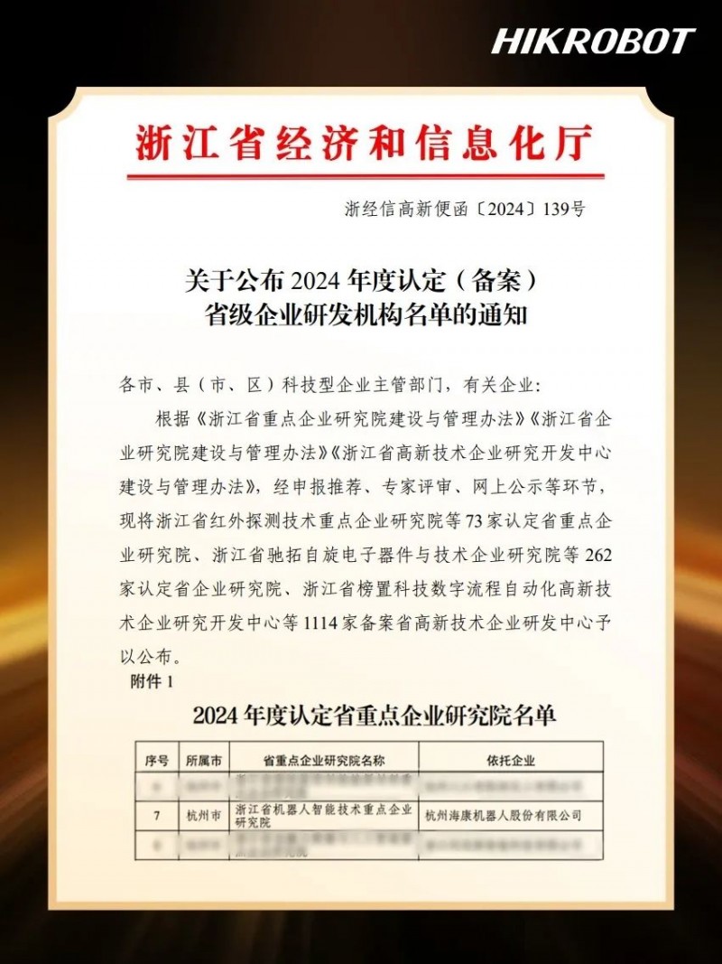一路高歌,屢創佳績!近年來,海康機器人在科技創新領域的卓越表現得到廣泛認可,2024年榮膺“國家重點軟件企業”、“全省工業大數據與機器人智能系統重點實驗室”、“2024浙江省科學技術進步三等獎”等眾多榮譽獎項。