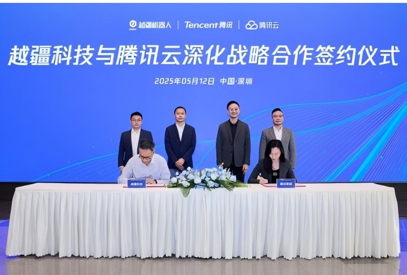 騰訊集團(tuán)高級執(zhí)行副總裁、云與智慧產(chǎn)業(yè)事業(yè)群CEO湯道生、騰訊云副總裁姚一兆、騰訊云深圳區(qū)域泛政總經(jīng)理張曉漫、越疆科技創(chuàng)始人兼CEO劉培超、越疆科技副總裁曾宇等共同出席簽約儀式。