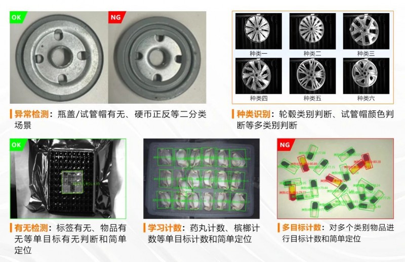??禉C器人全新推出的邊緣學(xué)習(xí)算法,覆蓋有無、正反、計數(shù)、分類等常規(guī)應(yīng)用;在工具命名上按照場景化的命名方式,讓用戶面對各種需求時能精準找到自己需要的模塊,以更小樣本,更簡操作,打造視覺應(yīng)用新范式。