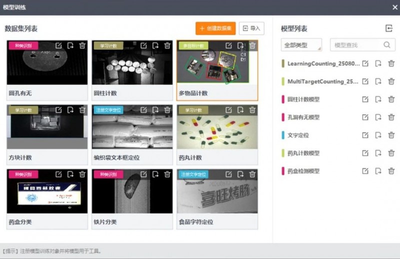 數(shù)據(jù)集和模型統(tǒng)一保存,且支持外部導(dǎo)入導(dǎo)出,用戶根據(jù)需求進行對應(yīng)模型選擇和追加訓(xùn)練,便于后期維護和模型的批量復(fù)制。