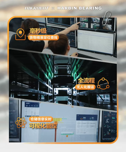 為實現多規格軸承的統一智能化調度,海康機器人創新構建MES(生產執行系統)+PLC(工控單元)+料箱機器人+關節機器人的“四維一體”控制架構由自研RCS系統作為智能樞紐,實現貨物快速查找、全自動搬運及倉儲數據全景可視。