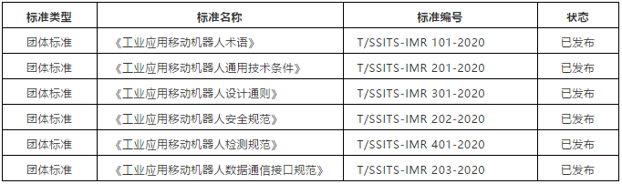 圖表:移動機器人產(chǎn)業(yè)聯(lián)盟制定的6項團體標(biāo)準(zhǔn)