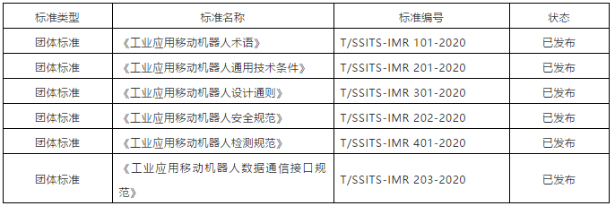圖表:移動機器人產業聯盟制定的6項團體標準