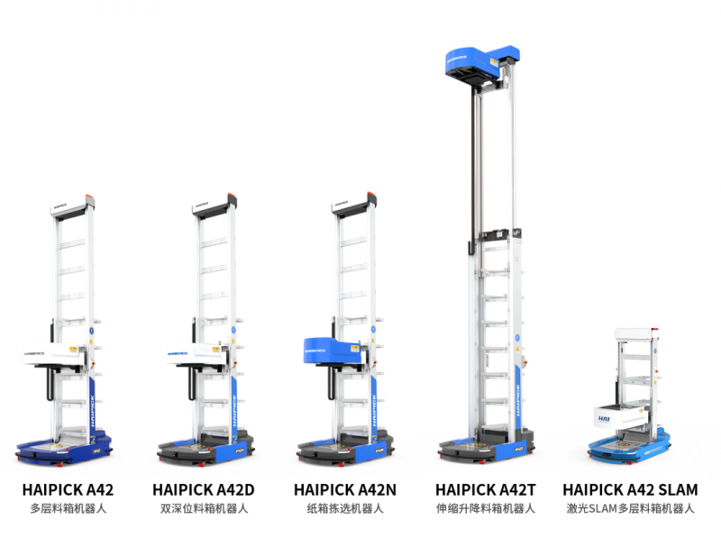 2020年,庫寶機器人從料箱機器人發展為箱式倉儲機器人系列產品,衍生出 HAIPICK A42(多層料箱機器人)、HAIPICK A42D(雙深位料箱機器人)、HAIPICK A42N(紙箱揀選機器人)、HAIPICK A42T(伸縮升降料箱機器人)、HAIPICK A42 SLAM(激光SLAM料箱機器人),針對客戶使用場景,提供全方位、定制化的解決方案。