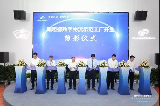 昆山市人大常委會主任張月林、昆山市人民政府副市長張建成、哈爾濱工業大學副校長張文叢、陸家鎮黨委書記方勇、陸家鎮黨委副書記/鎮長錢璁和斯坦德機器人總經理王永錕等眾多領導嘉賓為斯坦德數字物流示范工廠開業剪彩,市鎮領導與斯坦德機器人相關負責人共同為斯坦德機器人安全標準測試中心揭幕,并共同參觀了斯坦德數字物流示范工廠。