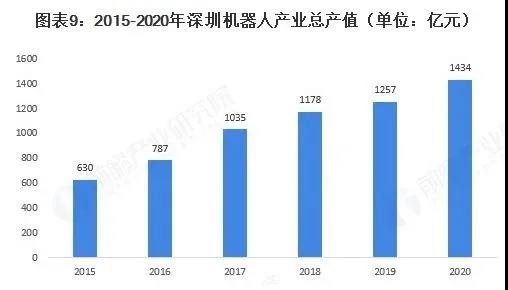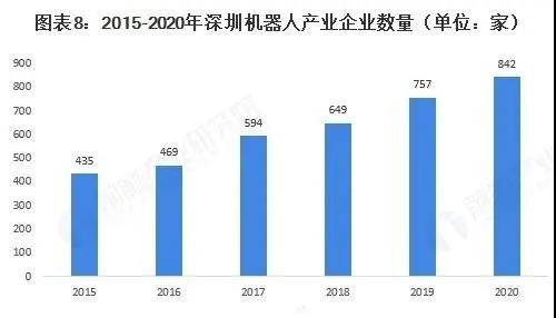 近年來,深圳機器人產業規模愈發龐大,2020年深圳市機器人產業總產值為1434億元,較2019年的1257億元增長14.08%,產值增速顯著回升,回歸發展快車道。深圳市機器人企業總數量達842家,較2019年的757家增長11.23%。