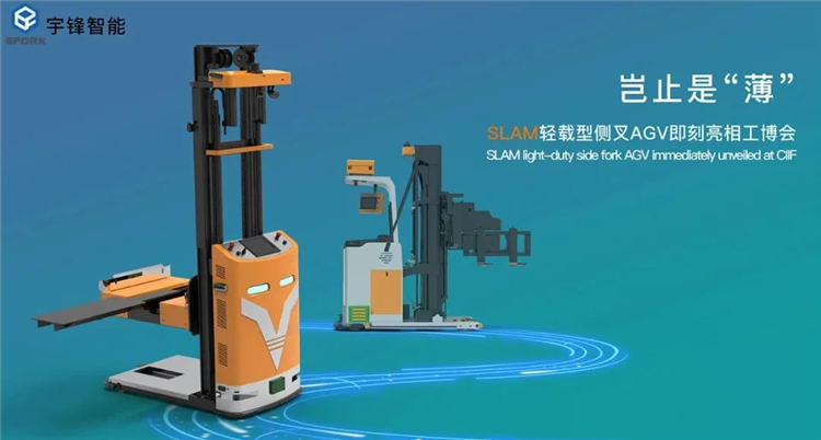 宇鋒智能輕載型側叉AGV(ECA03J-40),搭載自主研發的最新導航定位系統和嵌入式控制系統,基于SLAM的導航原理,融合GPS定位,建圖直觀、多場景應用,無需對客戶現場環境做大的改造,重復到位精度±10mm,滿足絕大部分物料搬運需求。車身纖薄,窄巷道作業,整體寬度相比三向叉AGV縮小76%,負載300KG,提升高度可達4m。