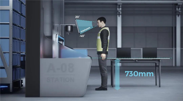 經(jīng)研究分析,類Kiva系統(tǒng)中揀貨人員共有四大動作,尋找、觸達、校驗和揀選完成后的播種。目前,PopPick將前面三個動作均進行了優(yōu)化,既避免了尋找商品可能造成的差錯,也極大地減少了時間浪費,最大程度地提高了人效。此外,PopPick工作站符合人體工學設計,揀貨人員不需要彎腰或者攀高,揀貨箱被自動送到手邊,雙點揀選最大化人員的揀貨效率,箱式揀選效率可達650箱/小時/工位。