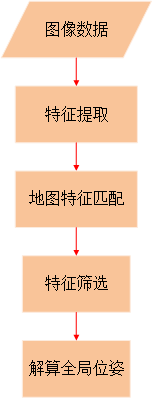 紋理導航算法首先對相機采集的圖像進行視覺特征提取,這里的視覺特征主要指點、線及結(jié)構(gòu)特征等;然后,算法會將提取得到的特征與導航地圖庫中的特征進行匹配、篩選,得到地圖庫中對應的匹配特征,根據(jù)兩對特征的相互映射、轉(zhuǎn)換關(guān)系解算實時全局位姿,完成AGV設(shè)備的導航定位。