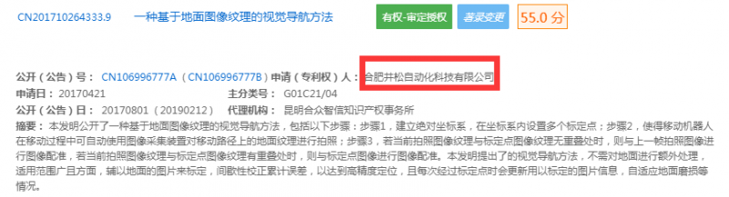 新戰(zhàn)略移動機器人產(chǎn)業(yè)研究所通過專利檢索發(fā)現(xiàn),目前該導航方式為發(fā)明專利,主要專利人為合肥井松自動化科技有限公司與上海懶書智能科技有限公司所有,發(fā)明人均為劉詩聰。