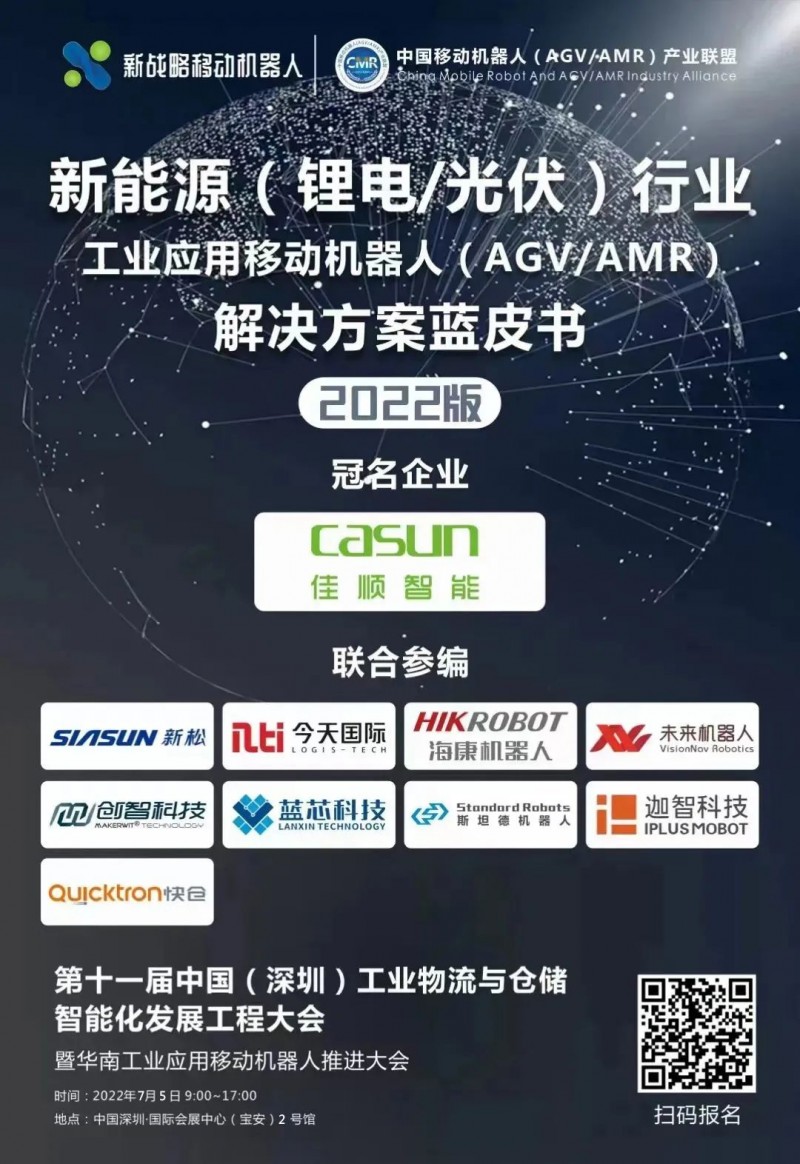 當前,新能源領域,氫能產業發展還處于早期,但鋰電及光伏產業已經相對成熟,生產環節的自動化程度也在不斷提高,移動機器人作為自動化搬運設備,也陸續在鋰電及光伏行業落地應用。2022年7月5日,中國移動機器人(AGV/AMR)產業聯盟將發布 《新能源行業用移動機器人(AGV/AMR)解決方案藍皮書(2022版)》,敬請期待!